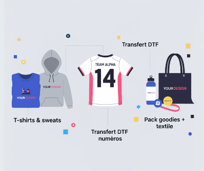 Vêtements & accessoires personnalisés pour équipes, événements et cadeaux d’entreprise — broderie, sérigraphie, transfert/DTF.